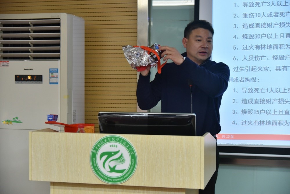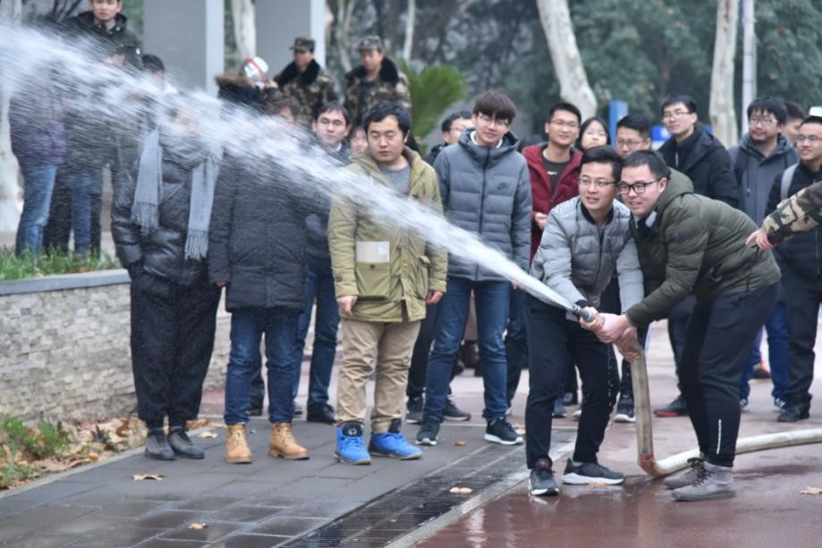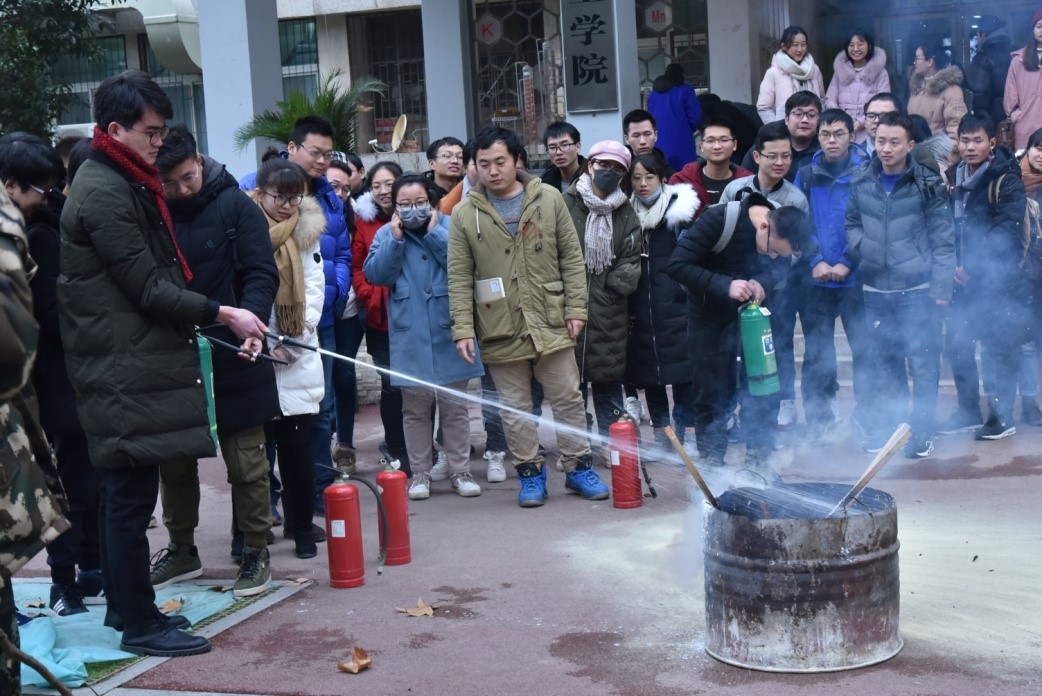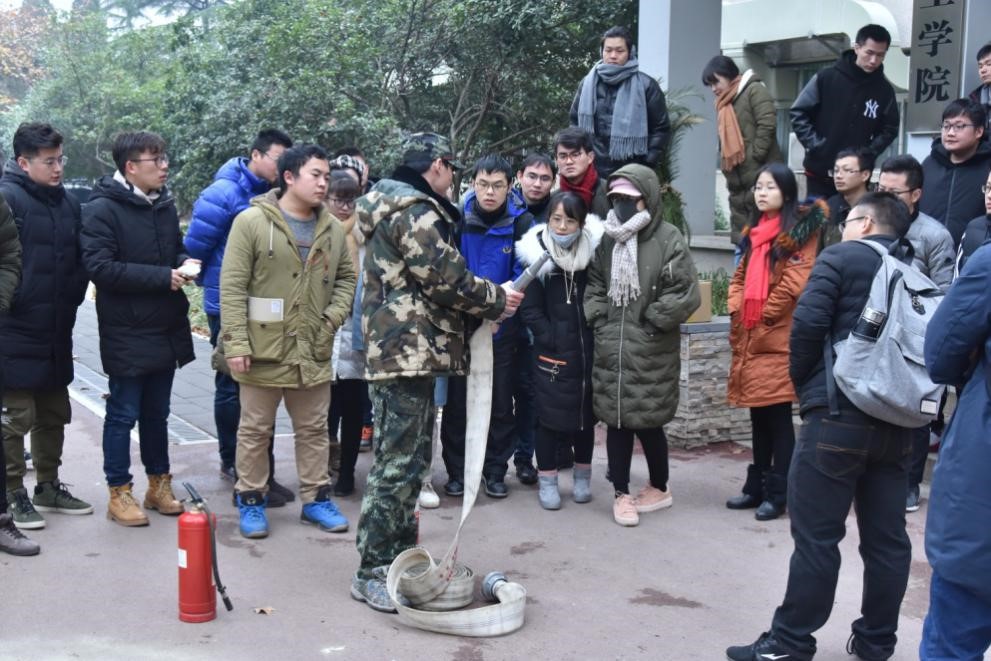 为进一步强化全院师生消防安全意识,提高师生防火救灾的实战技能,防患于未然,12月11日下午,化学与化工学院联合校保卫处成功举办了2018年度消防演习。化学与化工学院副院长陈小锋、校保卫处治安与消防管理科科长毛天音、消防局的消防队员们和我院师生共一百余人参加了演习。在化院师生以及消防官兵的共同参与下,本次演习顺利展开。