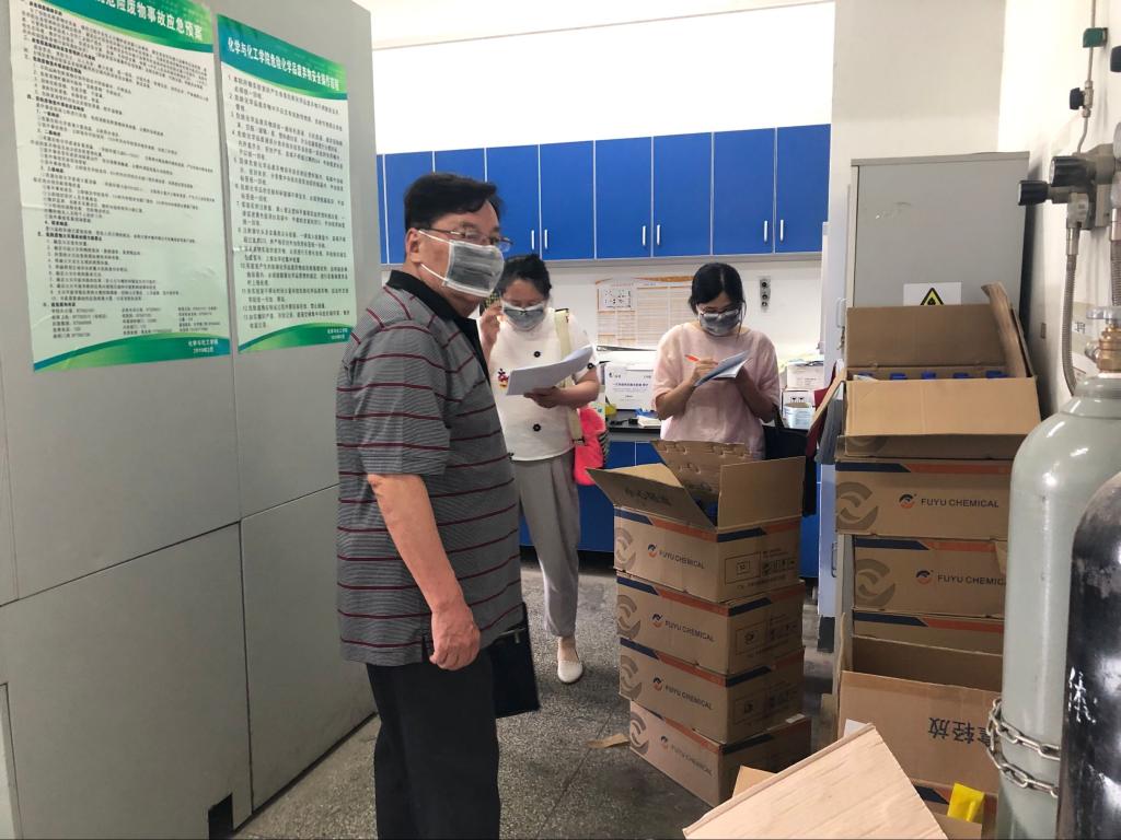 根据《教育部办公厅关于做好2019年度高等学校科研实验室安全工作的通知》(教技厅函〔2019〕37号)要求和校领导批示,实验室与设备管理处近期对我院进行了一次实验室技术安全检查与评估,本次检查评估工作由校实设处朱菁萍、罗丽艳老师组织,赵永俭、徐绍芳老师担任评估专家,我院朱启军副院长、两名安全员参加。