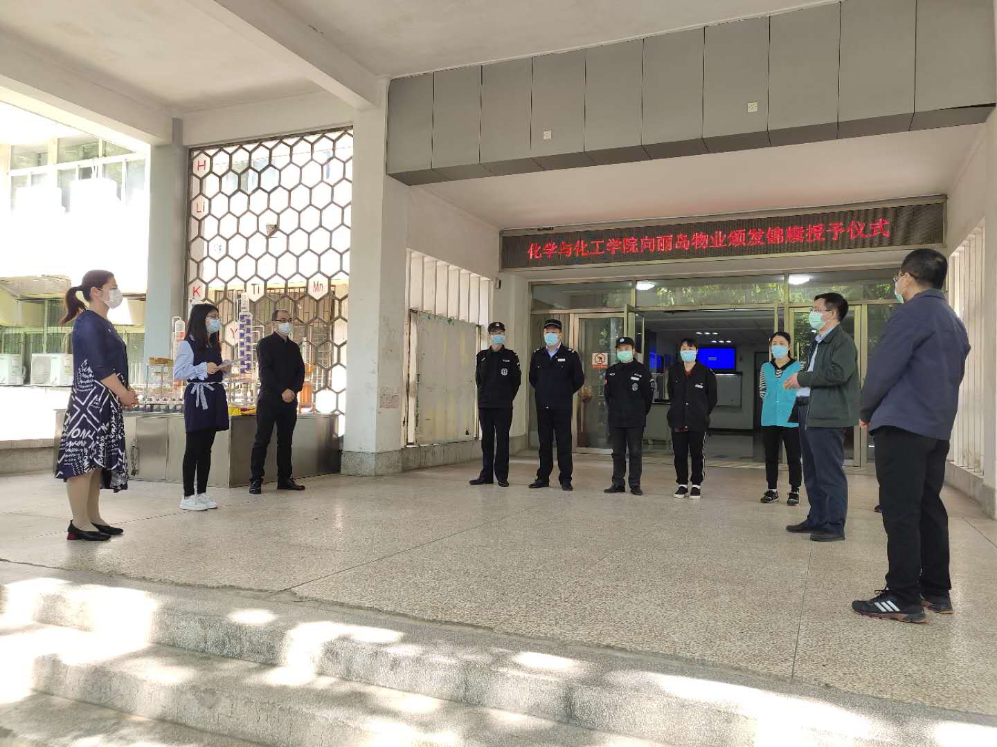 至此,化学与化工学院向丽岛物业颁发锦旗授予仪式圆满结束。