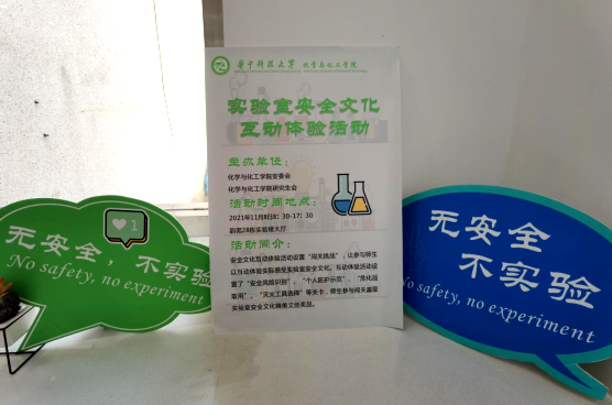 为提高学院师生实验安全责任意识,营造浓厚的实验室安全文化氛围。2021年11月8日,化学与化工学院安全管理委员会、研究生会在韵苑28栋一楼大厅开展了实验室安全文化互动体验活动。活动主题是“无安全,不实验”,化学院200余名师生参与其中,收益良多。