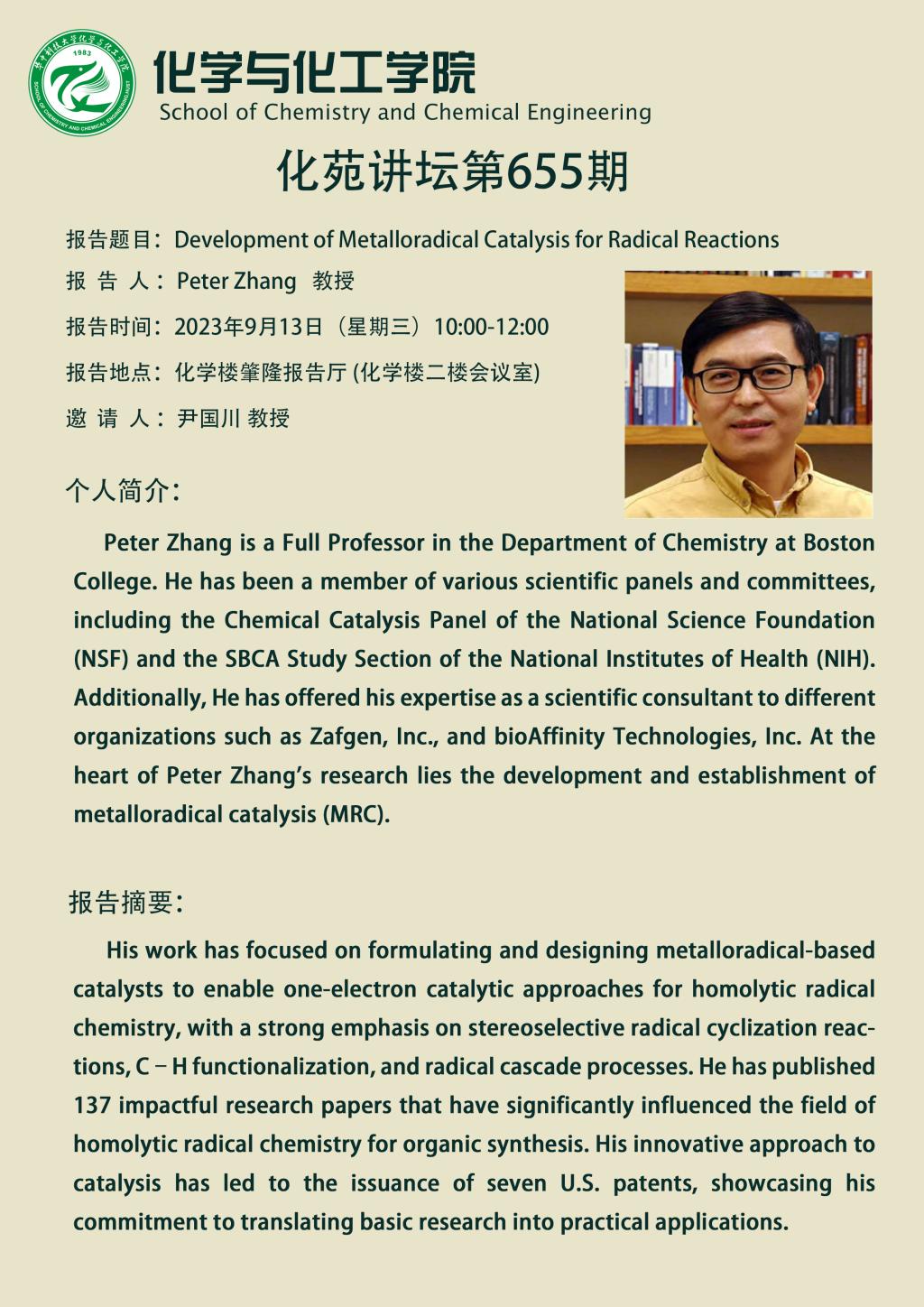 美国波士顿学院Peter Zhang教授做客第655期化苑讲坛