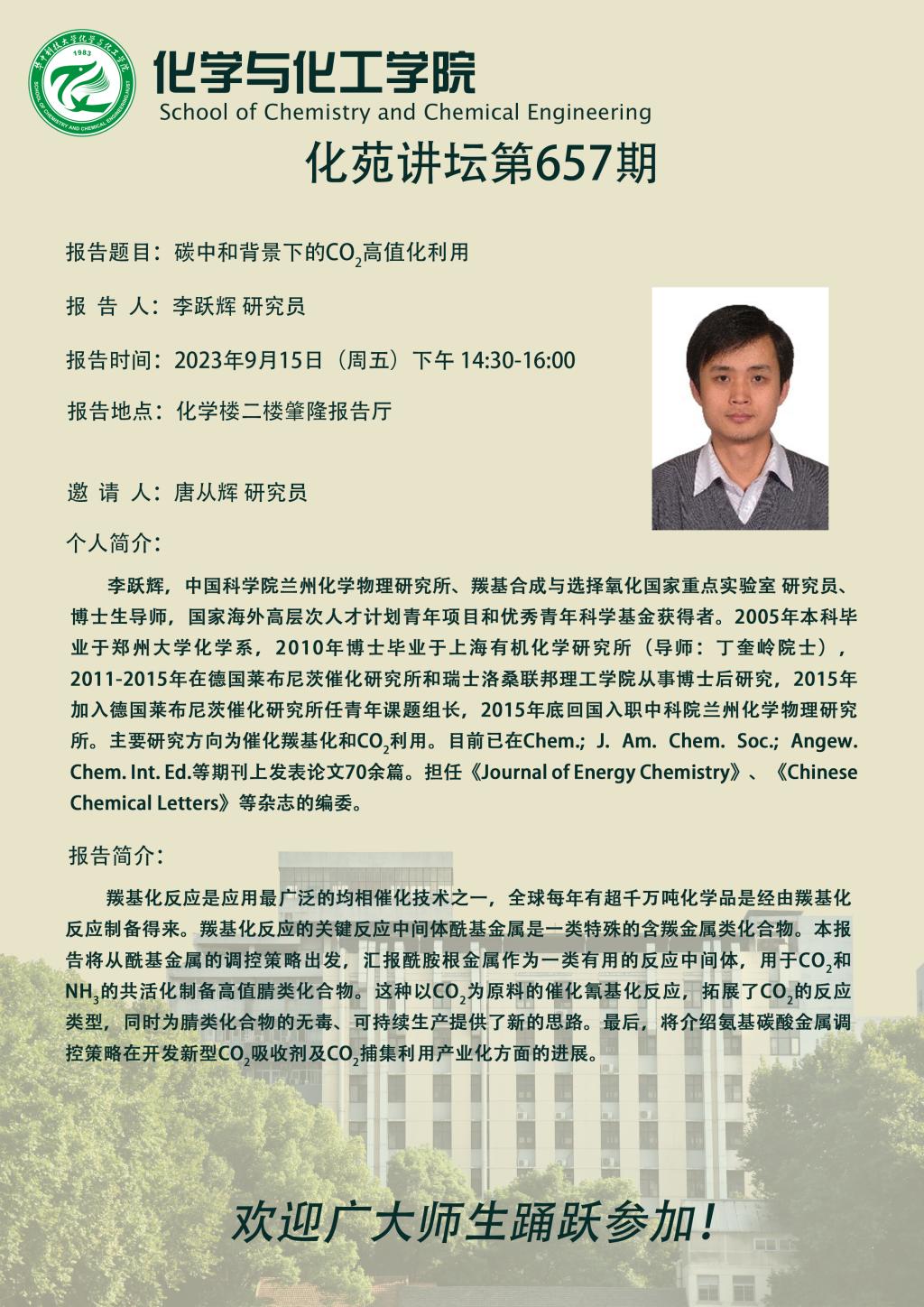 中国科学院兰州化学物理研究所李跃辉研究员做客第657期化苑讲坛