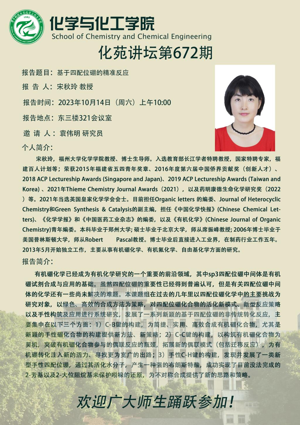 福州大学宋秋玲教授做客第672期化苑讲坛