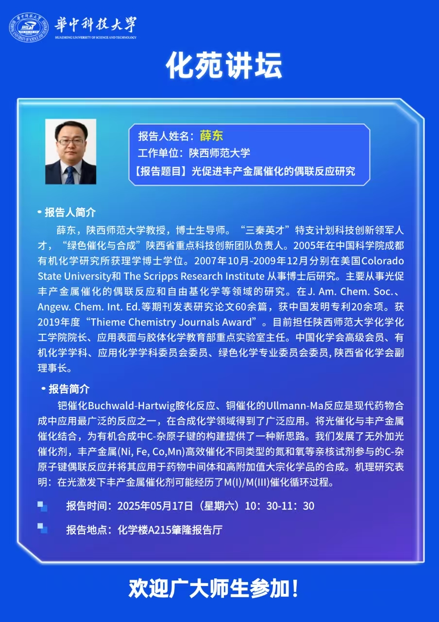 陕西师范大学薛东教授做客第765期化苑讲坛