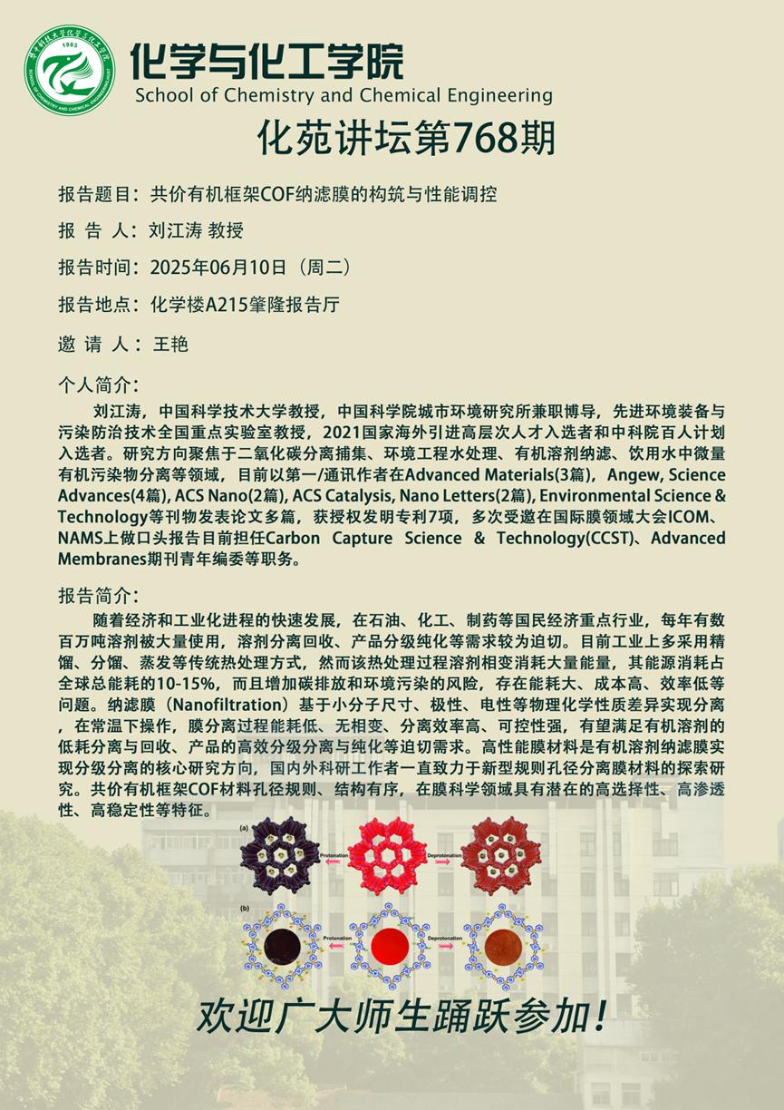 中国科学技术大学刘江涛教授做客第768期化苑讲坛