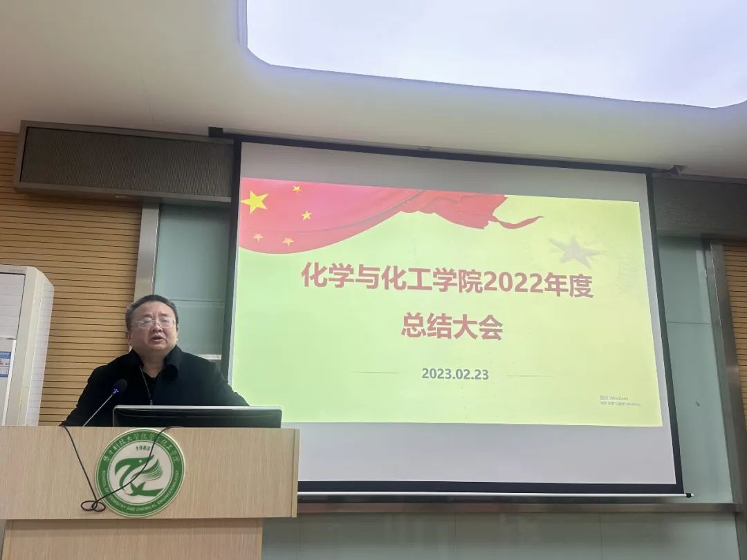 2月23日下午,学院2022年度总结大会在化学楼一号会议室召开,学院领导班子及全体教职工参会。会议由学院党委书记江洪洋主持。