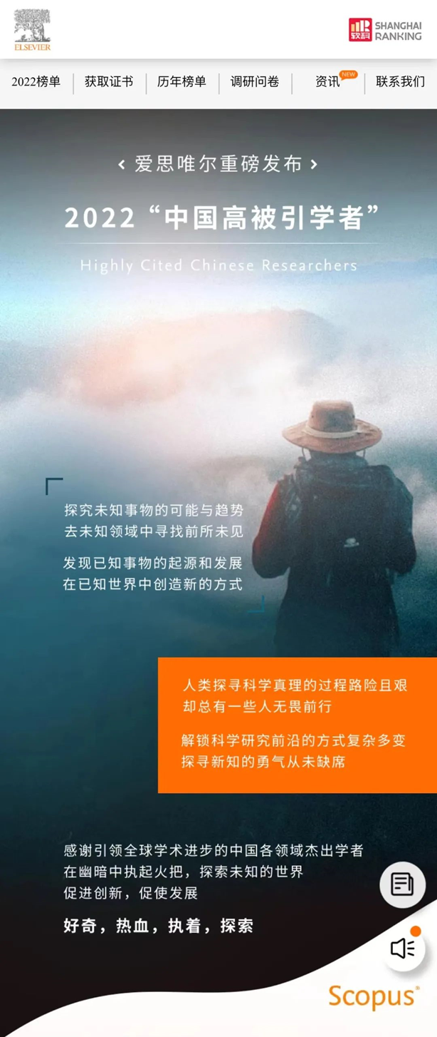 据悉,该榜单以全球领先的信息分析公司爱思唯尔(Elsevier)的引文与索引数据库Scopus作为统计来源,采用了上海软科教育信息咨询有限公司开发的方法,从多个维度深度剖析、识别处于科研职业生涯不同时期的中国学者、并系统性展示其科研成果表现。这是自2015年以来双方合作进行的第九次发布,爱思唯尔为该榜单提供了数据支持和技术实现。