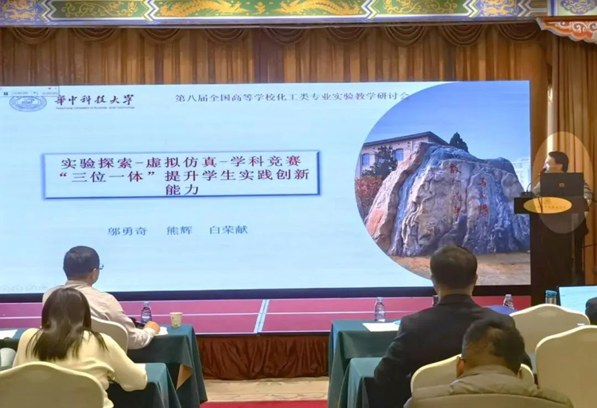 我院邬勇奇、熊辉、白荣献三位老师参加了会议。我院曾任三届教育部化工教指委委员的杨亚江教授作为特邀代表出席了本次会议。邬勇奇老师受邀做了题为“实验探索-虚拟仿真-学科竞赛三位一体提升学生实践创新能力”的专题报告。报告围绕如何培养学生创新能力这一主题,首先从实验教学环节入手,通过问题导向的学习,在实验中培养学生发现问题、提出问题的能力,再进一步深入探讨解决问题的方法;其次利用虚拟仿真软件,强化学生的工程实训(实习),通过在实训环节中设置不同类型难题和关键性指标,引导学生分析操作趋势线中出现的各种异常现象,然后结合所学理论思考如何解决相关问题,最终达到实训实习要求;此外,以学科竞赛为依托,加强对大学生创新创业的教育,坚持“志趣驱动、科创引领”育人理念,围绕国家级化学、化工类学科竞赛开展系列培训活动,指导学生用新的观点、思路和方法解决竞赛中出现的问题。学生在竞赛中取得优异成绩的同时,综合创新能力也得到大幅提升。报告受到参会代表的广泛好评。