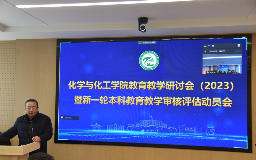 为进一步落实学校本科教育教学审核评估动员大会的精神,11月28日上午,化学与化工学院在化学楼肇隆报告厅召开了教育教学研讨会(2023年)暨新一轮本科教育教学审核评估动员布置会,副校长陈建国、学院全体班子成员和全体教职员工参加了会议。