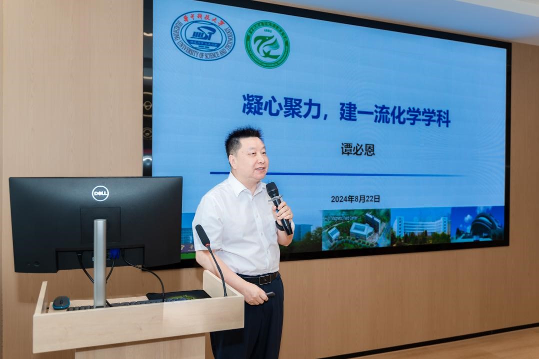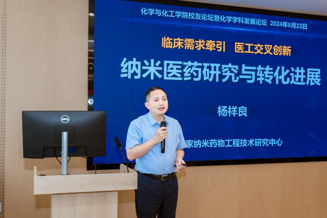 化学与化工学院院长谭必恩介绍了学院的发展情况。谭院长从师资队伍、学科建设、科研成果、人才培养等方面进行了全面阐述,让校友们对学院的现状有了更深入的了解,也让大家看到了学院在化学领域不断进取的蓬勃态势。
