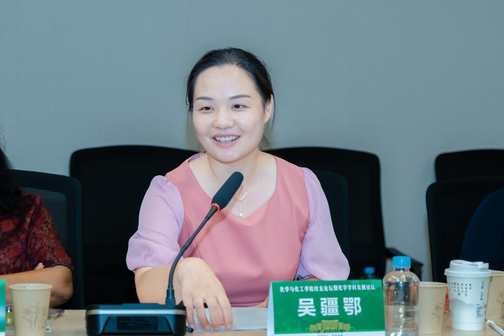 最后,化学与化工学院党委书记吴疆鄂进行总结发言,吴书记对校友们的积极参与和支持表示感谢。她强调,学院将充分吸收校友们的意见和建议,不断推进化学学科的建设和发展,为培养更多优秀的化学人才而努力。