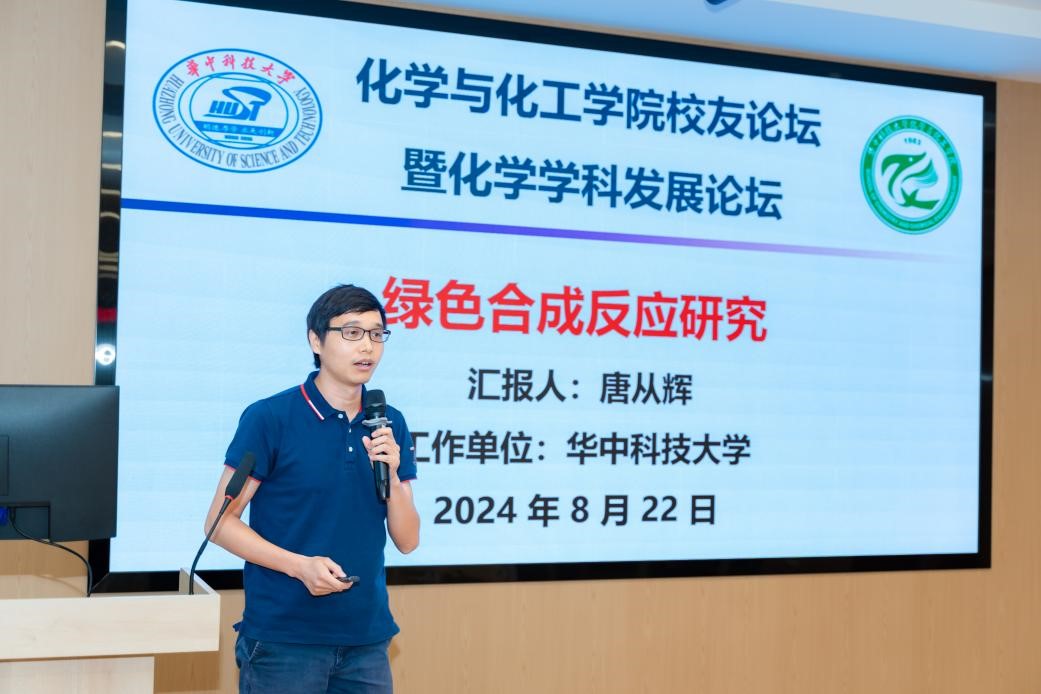 2024 年 8 月 22 日下午,化学与化工学院校友论坛暨化学学科发展论坛在化学楼肇隆报告厅隆重举行。原化学与化工学院系主任徐辉碧、原学院党委书记艾一梅、华中科技大学校友办主任戴则健,化学与化工学院校友会会长朱锦涛、院党委书记吴疆鄂、院长谭必恩,本科1987级校友中国科学院院士陈春英、学院大湾区校友会会长孙卓明、长三角校友会会长杨财广及20余位校友与在校师生齐聚一堂,聆听资深学者报告,交流研究经验,分享创新成果,助力化学学科高质量发展。