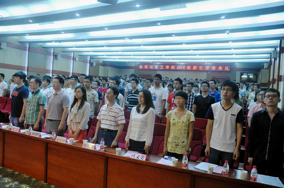 9月3日上午,化学与化工学院2014级新生开学典礼在一号楼报告厅隆重举行。我院2014级181名本科新生及135名研究生新生参加了开学典礼。化学与化工学院党总支书记李涛,院长解孝林及全体院领导班子出席开学典礼,一同参加的还有化学与化工学院各研究所所长,2014级本科生教师班主任以及学生工作组全体辅导员。典礼由党总支副书记吴疆鄂主持。