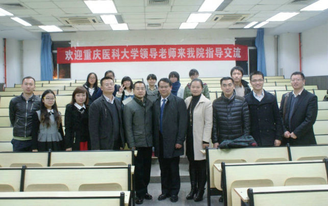 2013年11月30日下午,重庆医科大学常务副校长董志一行来我校看望慰问了临床七年制新生,并为同学们讲述了一堂非常生动的专业导论课。教务处副处长李兵、学生处副处长杨华仁以及学生处第二学生工作办公室主任杨志强、临床一系教务科长朱丹、临床二系教务科长宋家虎一同参与了慰问。