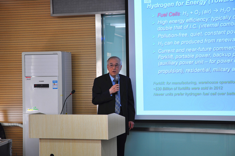 在受聘仪式之前,杨祖保就给化学与化工学院的部分师生代表做了题为《清洁能源之吸附》的科研报告,从吸附过程基本原理、吸附性能和材料等多个方面,系统介绍了自己在国际吸附领域的研究结果和心得,到会师生表现出了浓厚的兴趣和热情,提问踊跃。