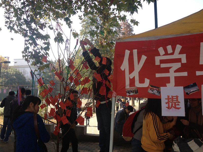 为了迎接十八大的召开,学习十八大的会议精神,增进同学们对党组织的认识和了解,加强自身的爱国主义教育,化学与化工学院党建工作组于2012年11月18日,在紫菘网球场前举办了“我眼中的党建活动”优秀创意现场征集活动。