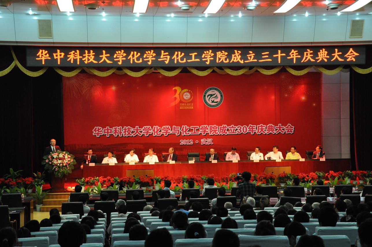 10月7日上午,化学与化工学院成立三十年庆典大会在管理学院学术报告厅隆重举行。出席庆典大会的嘉宾有:中国科学院院士、华中科技大学副校长罗俊教授,中国科学院院士、厦门大学万惠霖教授,中国科学院院士、武汉大学卓仁禧教授,中国科学院院士、香港科技大学唐本忠教授,国家自然科学基金委马劲处长,湖北省化学化工学会理事长刘良炎研究员,台湾交通大学终身国家讲座教授张丰志教授,973首席科学家、教育部“长江学者”特聘教授、国家杰出青年基金获得者、武汉大学化学与分子科学学院院长周翔教授等。厦门大学、武汉大学、华中师范大学、中国地质大学、武汉理工大学、华中农业大学、湖北大学、中南民族大学、武汉工程大学、长江大学、武汉科技大学、武汉纺织大学、湖北工业大学、江汉大学、湖北文理学院、湖北省化学研究院等20多个兄弟单位的领导、校机关部处和兄弟院系领导到会祝贺,近百名校友代表、学院教师及学生代表参加了会议。大会由学院党总支书记李华燊主持。
