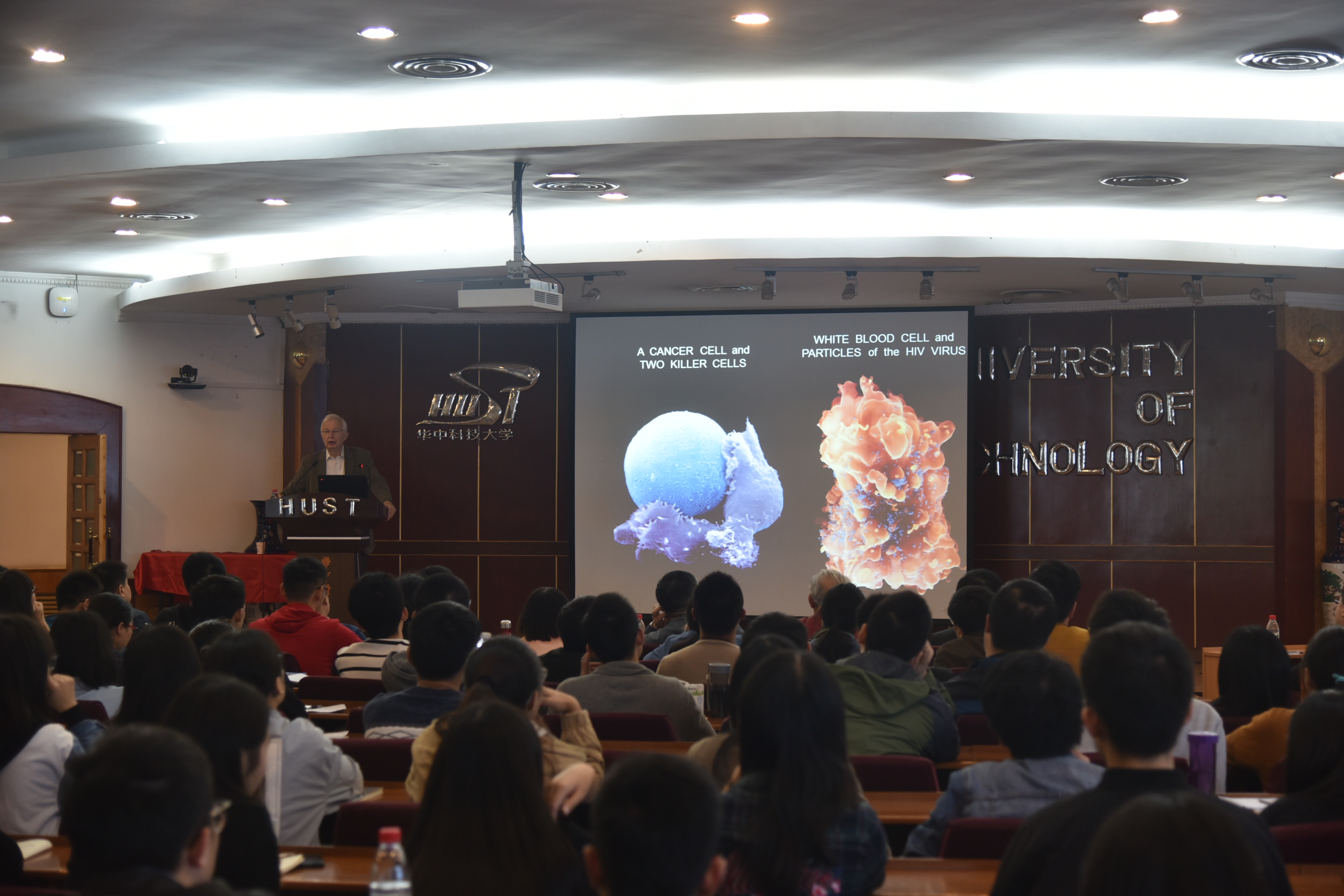 Lehn教授本次的讲座题目为:Perspectives in Chemistry: From Supramolecular Chemistry towards Adaptive Chemistry, Lehn教授用将近两个小时的生动演说把大家带进了超分子化学的学科领域,展现了化学的无穷魅力,也让大家通过超分子化学了解了自适应化学。他说,物理是宇宙万物的法则,生物是生命的规律,而化学,则是二者的桥梁,将其推向了一个更为复杂的世界。化学是一门创造新物质的科学,是没有生命的分子通向活的生命体重的高度复杂的分子体系的桥梁,世间万物都是通过分子间的相互作用形成的有组织的实体。