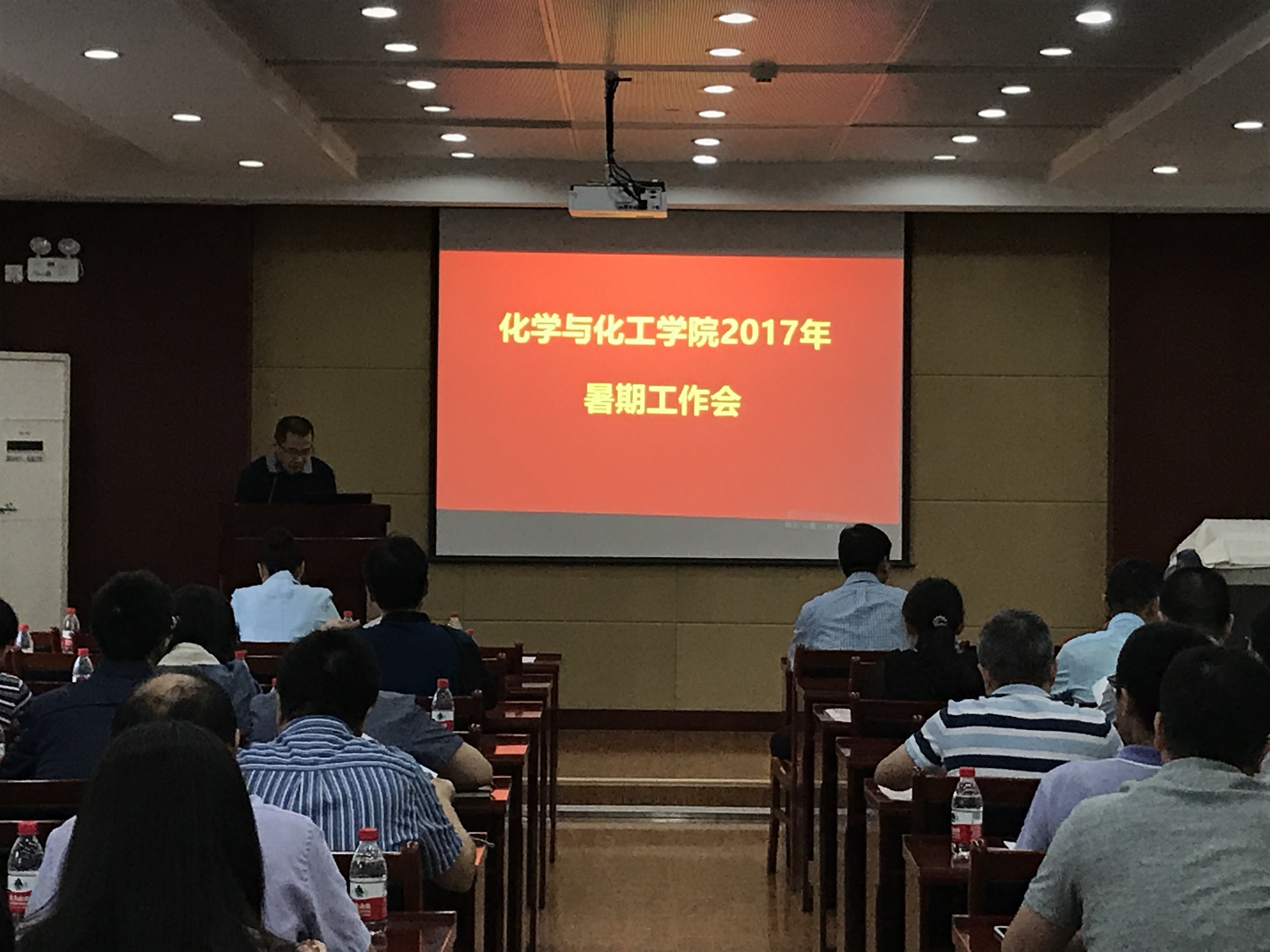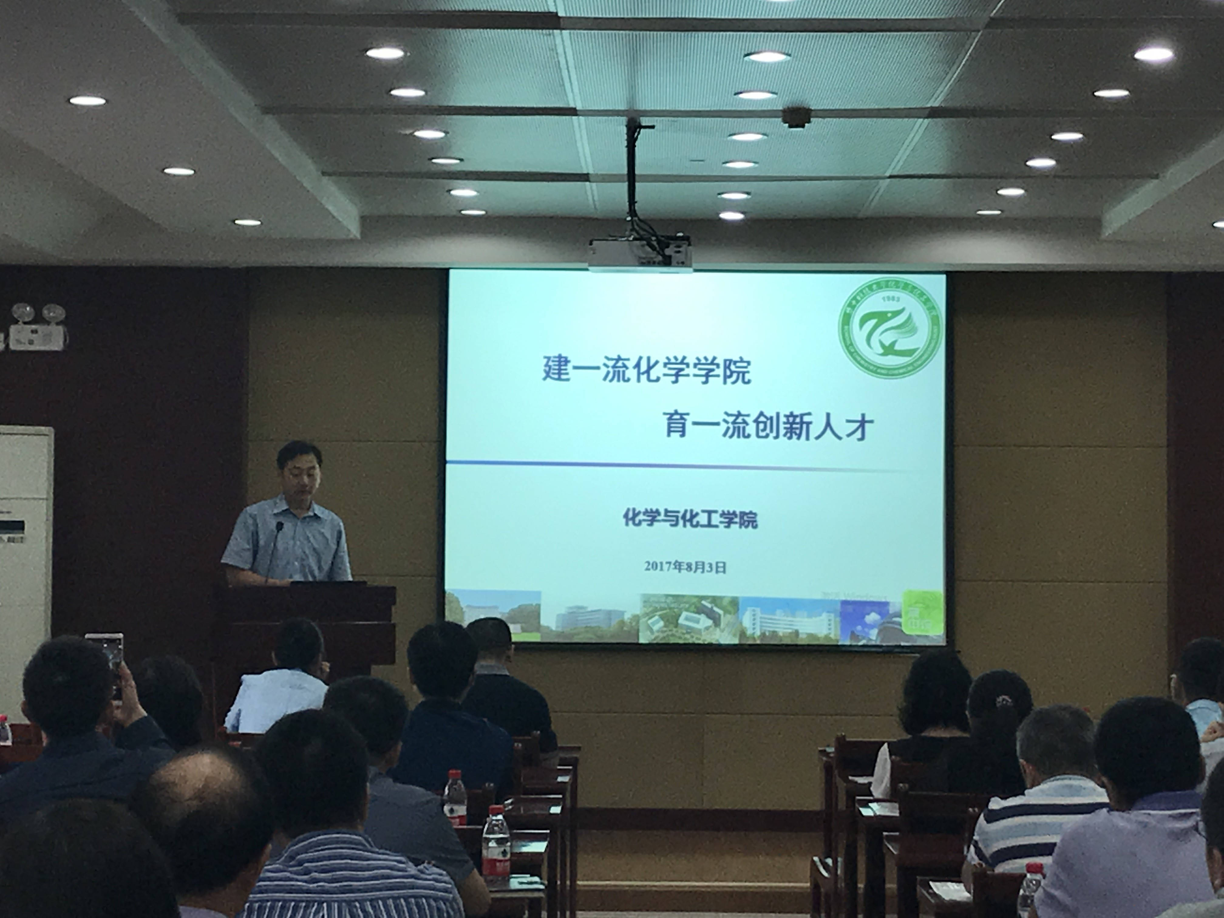 朱锦涛院长做了题为“建一流化学学院,育一流创新人才”的报告,对学院暑期工作做了回顾,对学院新学期在创新人才培养模式、提高生源质量、规范学院管理方面提出了新要求,对学位点评估、功能性化学楼建设、人才引进等工作做出了规划。