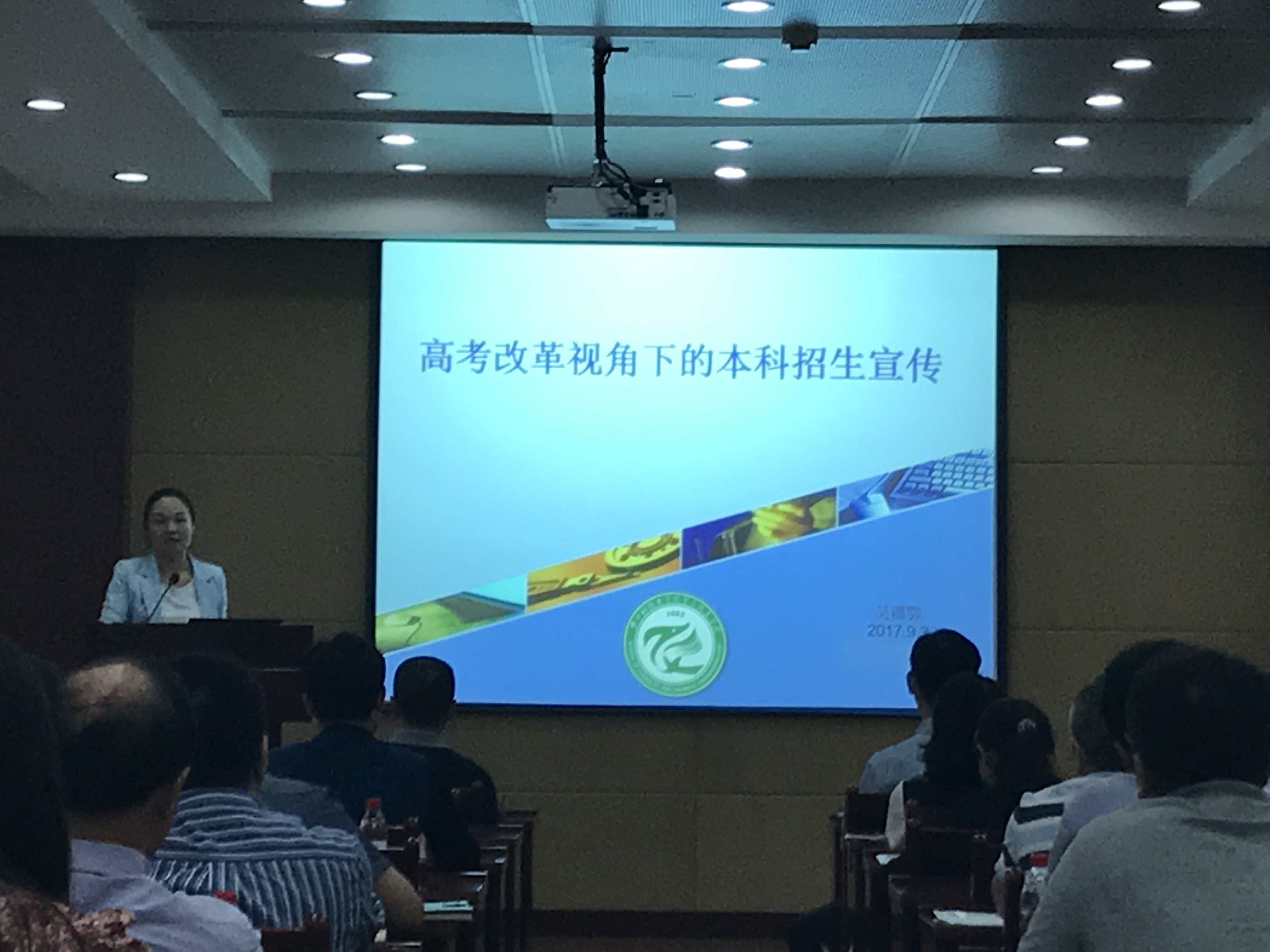 吴疆鄂副书记做了题为“高考改革视角下的本科生招生宣传”的报告,从高考改革的大背景、我院近几年的招生情况、学院努力的方向和具体措施、自己的招生宣传工作体会四个方面与老师们进行了分享,动员老师们全员参与到学院的招生工作中,共同努力,提高生源质量。