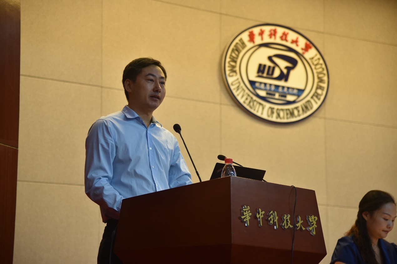 在庄严肃穆的国歌声中,化学与化工学院2017级新生开学典礼正式拉开帷幕。化学与化工学院院长朱锦涛教授首先致辞。朱院长对新生的到来表示欢迎,恭喜他们正式成为了喻园的主人,成为华中科技大学的一员。在致辞中,朱院长希望2017级的新生能够去真正了解化学,了解化学与化工学院。1983成立的化学系,到如今有着飞速的发展,学院师资力量完备,科研实力雄厚,承担国家级项目280项,省部级项目6项,拥有专利170多项,其中授权80多项,目前学院化学学科ESI排名达到了1.945‰,USNEWS排名达到了115名,化学已经成为华中科技大学建设一流大学不可或缺的力量。学院目标明确,特色鲜明,拥有资源丰富的科研平台和人才培养体系,这也鼓励大家把握机会,好好利用资源,成长成才。希望大家能做一个有毅力、有胸怀、自强自立自信、敢于创新的华中大人。