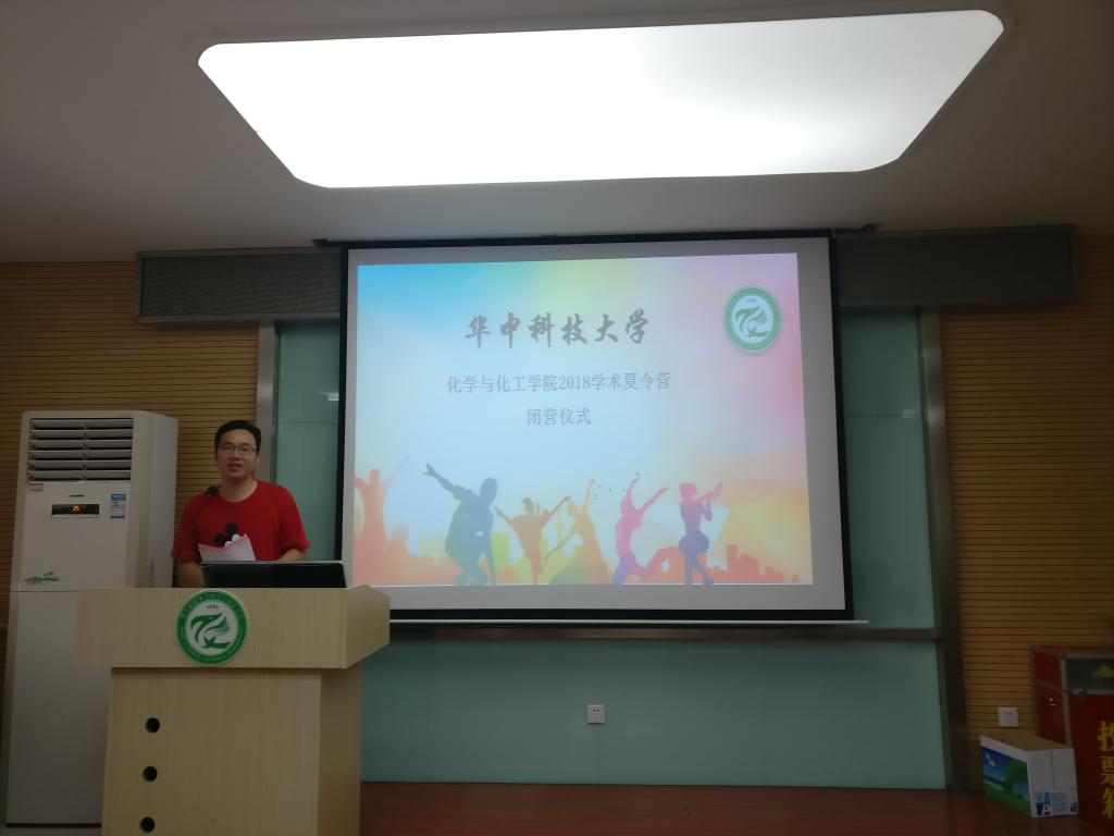 (通讯:陈雪梅)7月10日上午九点半,华中科技大学化学与化工学院2018年学术夏令营闭营仪式在化学楼一号会议室成功举办。闭营仪式由化学与化工学院辅导员孙健康老师主持。