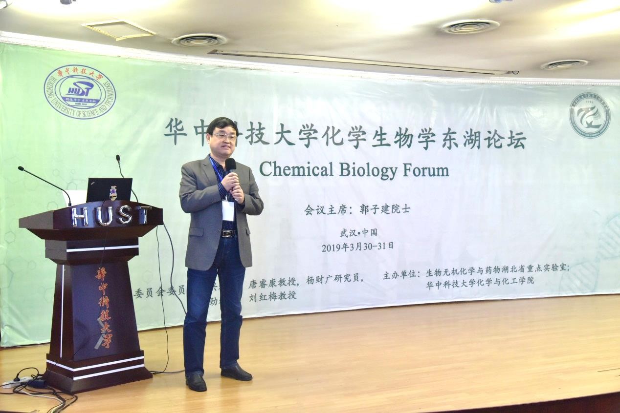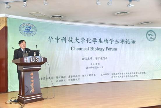 (通讯/ 刘红梅 吴钰周)2019年3月30日-31日,化学生物学前沿与发展东湖论坛在华中科技大学学术交流中心三楼报告厅顺利举办。此次论坛旨在展示国际化学生物学及相关研究领域取得的新方法和新成果,讨论化学生物学领域未来发展的新思路、新领域和新趋势,搭建高水平的合作交流平台。本次论坛由生物无机化学与药物湖北省重点实验室、华中科技大学化学与化工学院和国家纳米药物工程技术研究中心主办,由南京大学郭子建院士担任学术委员会主席。