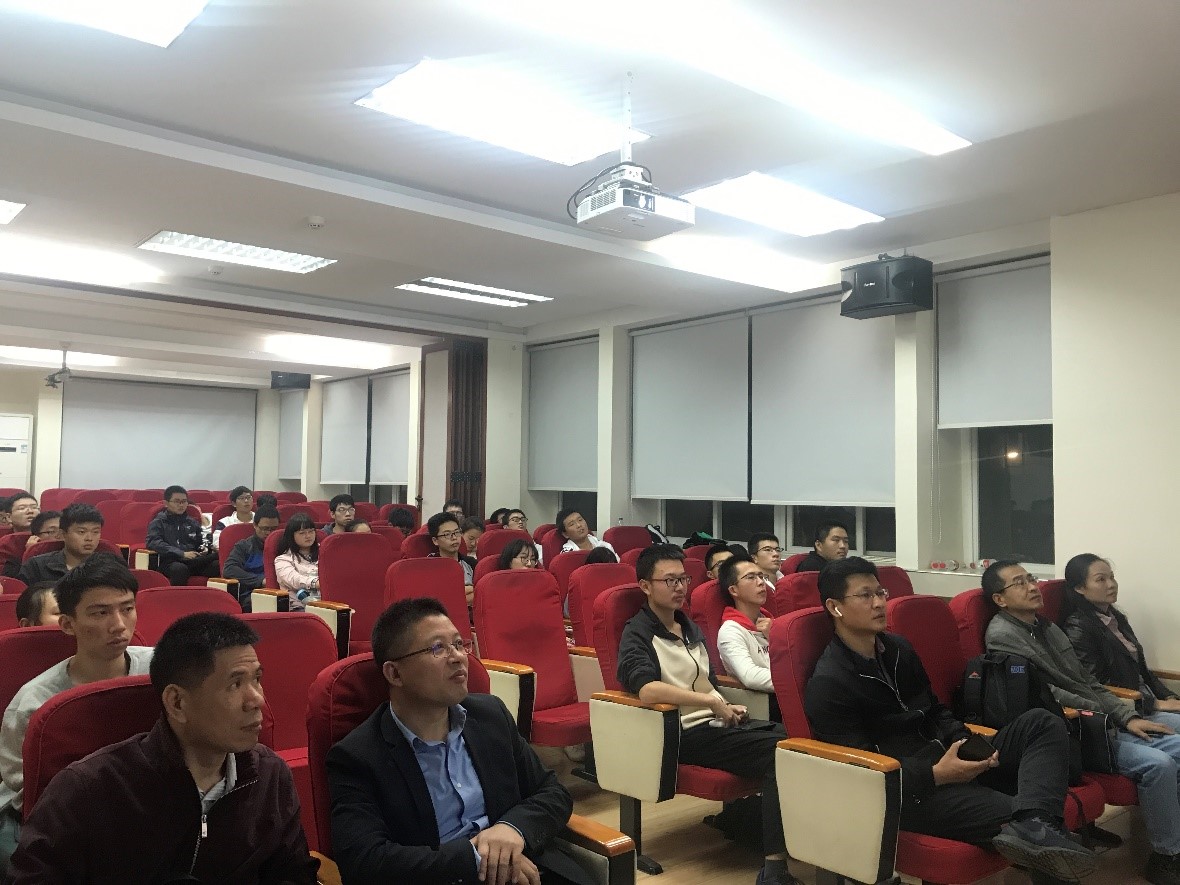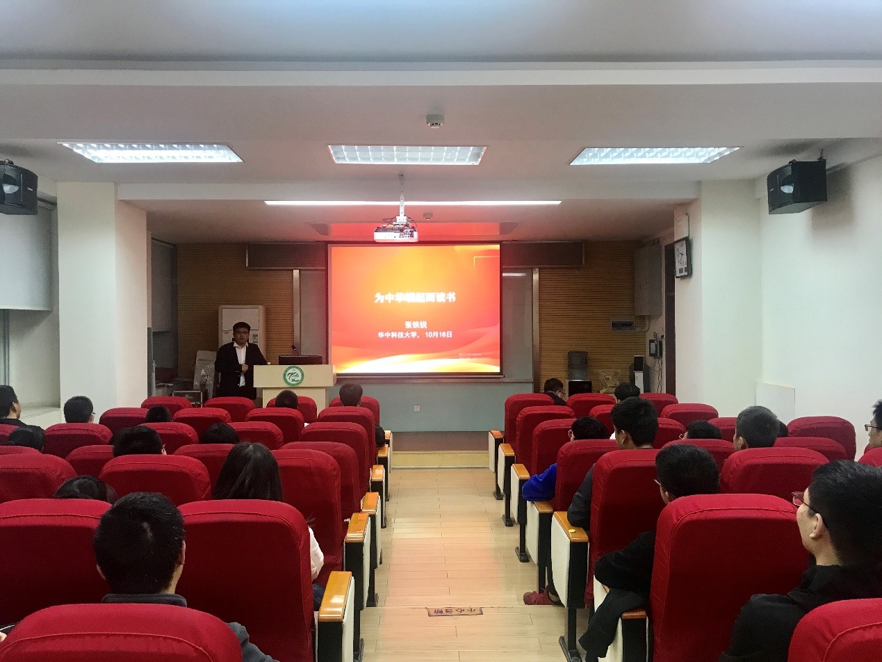 何谓科研报国?如何科研报国?张铁锐以“为中华之崛起而读书”为主题,为同学们带来了一场内容丰富,意蕴深远的思政课。张铁锐教授强调了树立目标的重要性,告诫同学们:“在现阶段,大家最大的目标就是应该为中华之崛起而读书”。他从电影《我和我的祖国》谈到了科研和国家的发展密不可分,并结合成长经历,表达了祖国步入了特色社会新时代,生活环境已发生了翻天覆地的变化。然而中华崛起,依然任重道远,中兴事件、港乱分子、境外势力等事件证明了我国在顶尖科学与技术领域依然落后,祖国振兴依然是时代重任。最后张铁锐教授勉励在座同学:“没有国就没有家,请同学们树立远大目标,不为眼前利益驱动,为中华之崛起而读书!”