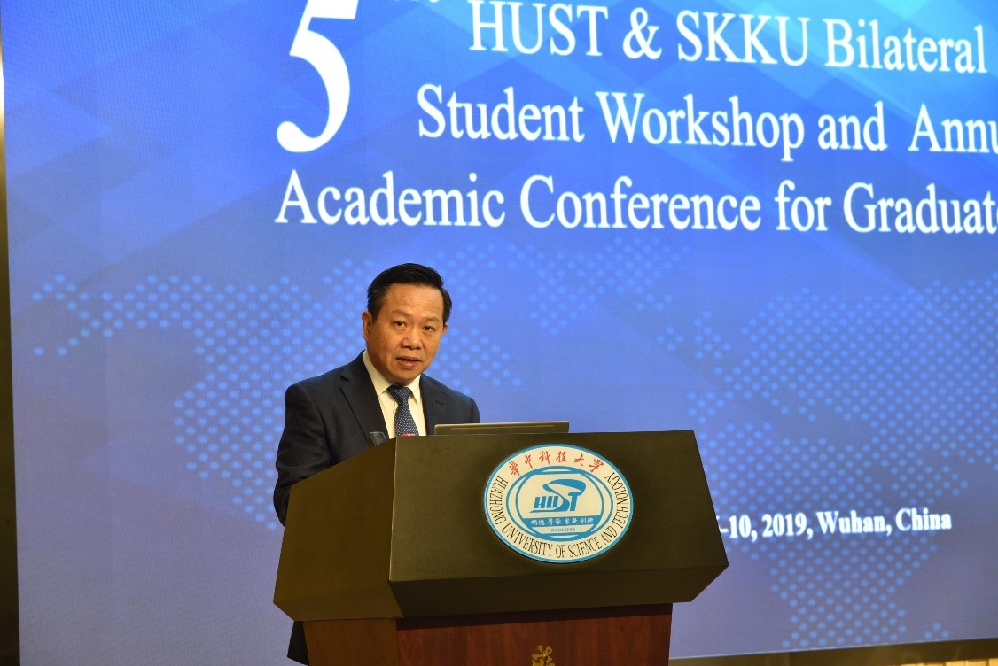 陈建国副校长作为交流会的联合主办方代表在开幕式中致辞。陈校长对韩国成均馆大学的来访表示热烈欢迎,对两校之间一如既往的学术交流活动表示肯定。同时,陈校长祝愿成均馆大学的教授和学生们在为期四天的学术交流会中能够不负期待,度过一次愉快而难忘的武汉之旅。