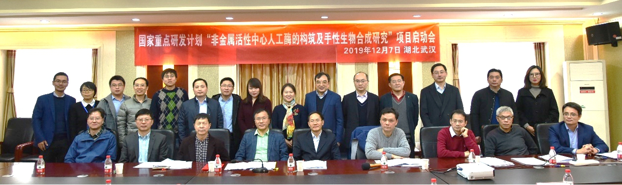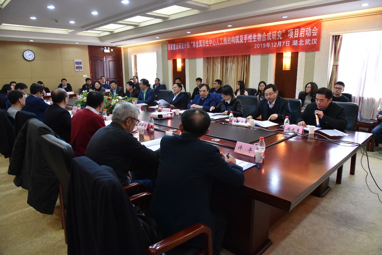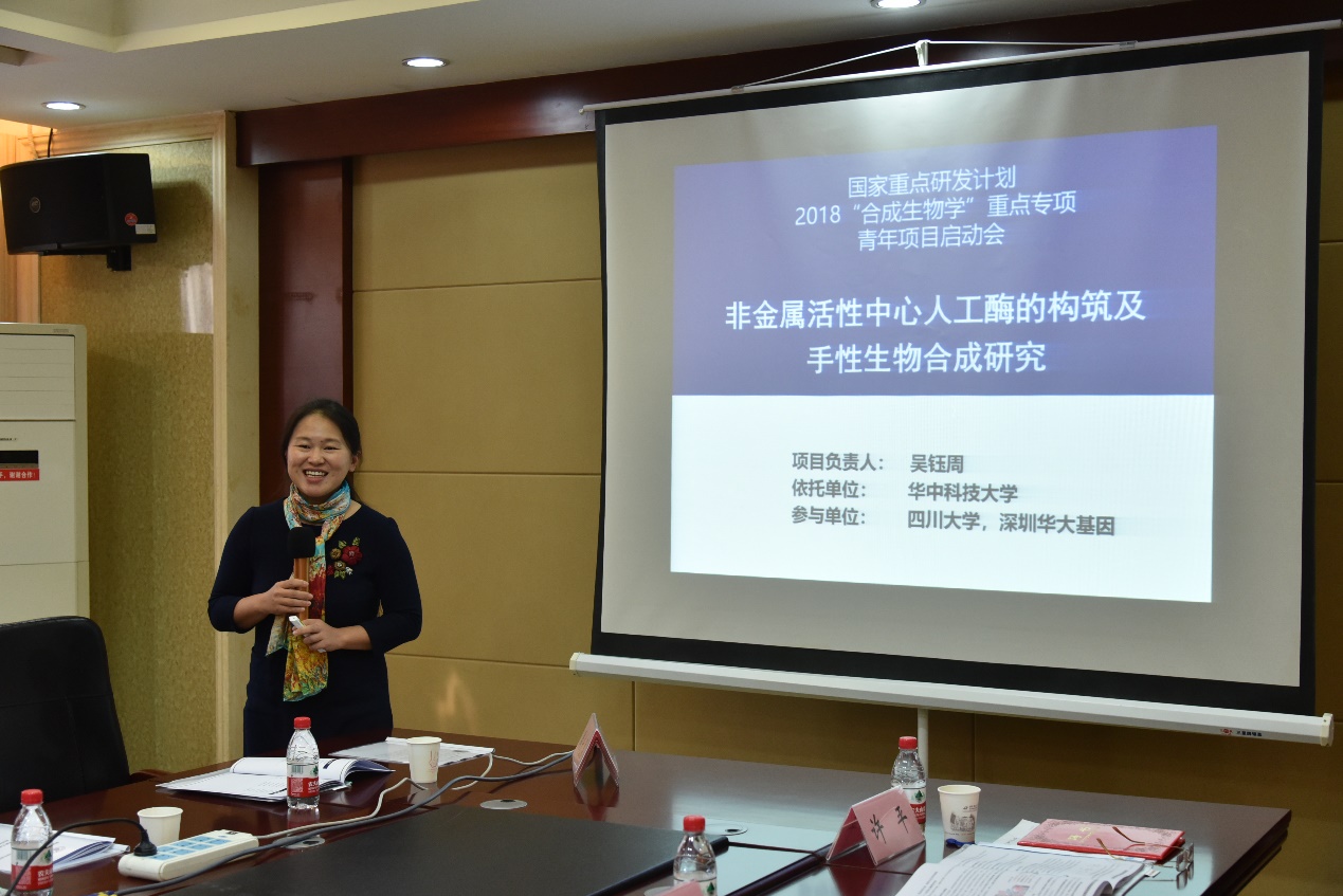 (通讯员 潘庆玲,吴疆鄂)12月7日,由华中科技大学化学与化工学院吴钰周教授牵头承担的国家重点研发计划2018年度“合成生物学”重点专项“非金属活性中心人工酶的构筑及手性生物合成研究”项目启动会暨实施方案论证会在我校召开。科技部中国生物技术发展中心前沿生物技术处处长王德平、专项主管曹芹、合成生物学重点专项责任专家、咨询专家组专家、项目组骨干和主要研究人员等共计30余人参会。会议由华中科技大学科学技术发展院副处长周光勇主持。华中科技大学科学技术发展院院长朱宏平、副处长周光勇、化学与化工学院院长朱锦涛也出席了会议。
