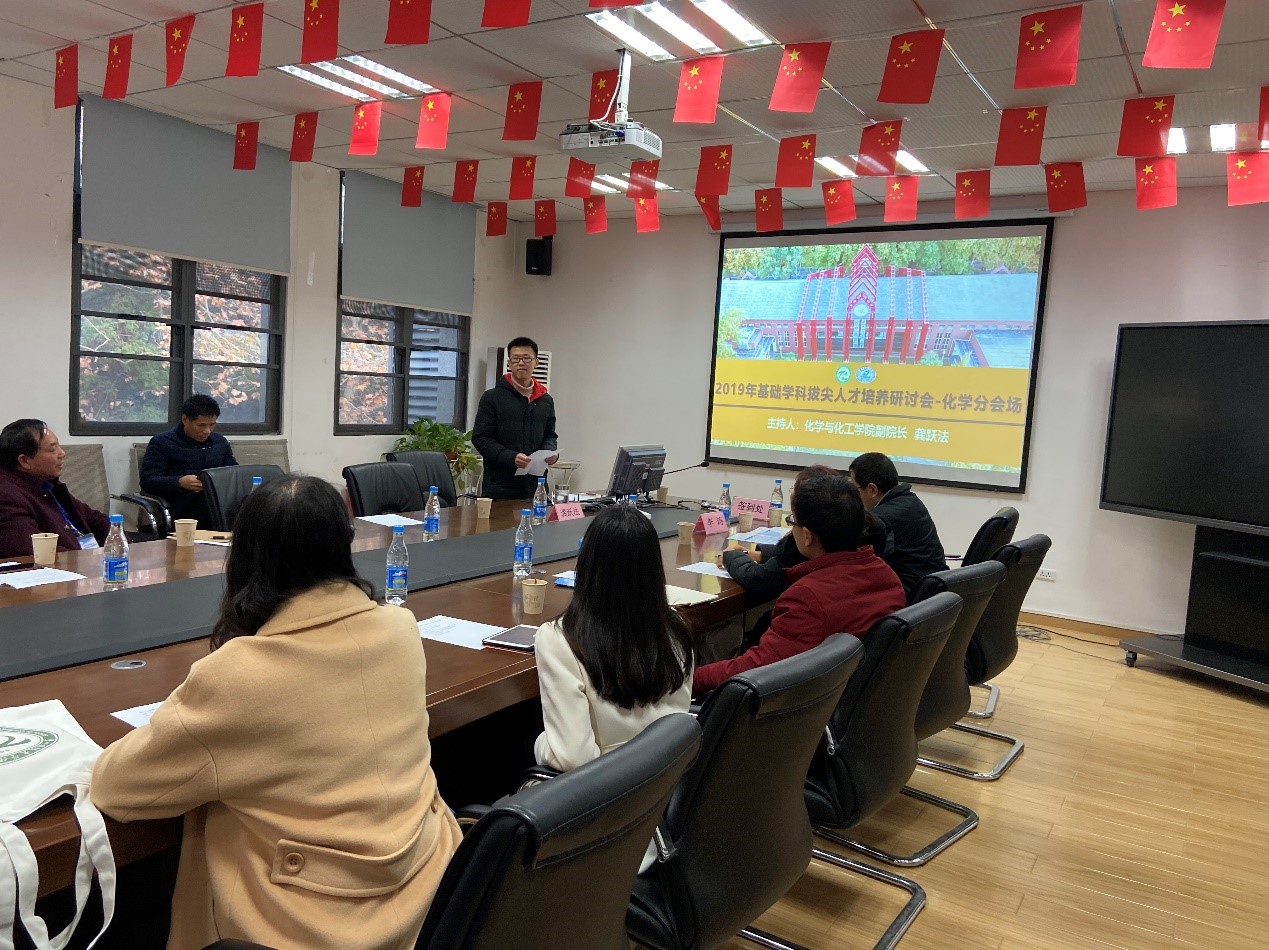 12月14日下午4点,本届研讨会化学分会场的研讨在东三楼321会议室召开。此次研讨会邀请到了来自河南省12所知名中学的12位化学名师参会。化学与化工学院党委书记李涛、副院长龚跃法、参与招生工作的部分老师以及一位河南籍同学一同参加了研讨。研讨会由化学与化工学院副院长龚跃法主持。