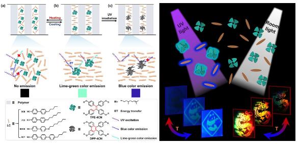图3.全息图像和荧光图像的协同温度响应原理