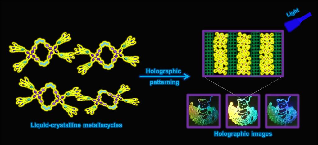 图5.基于超分子液晶金属大环的彩色全息图像存储
