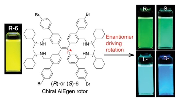 图1. AIEgen设计与对映体传感检测示意图