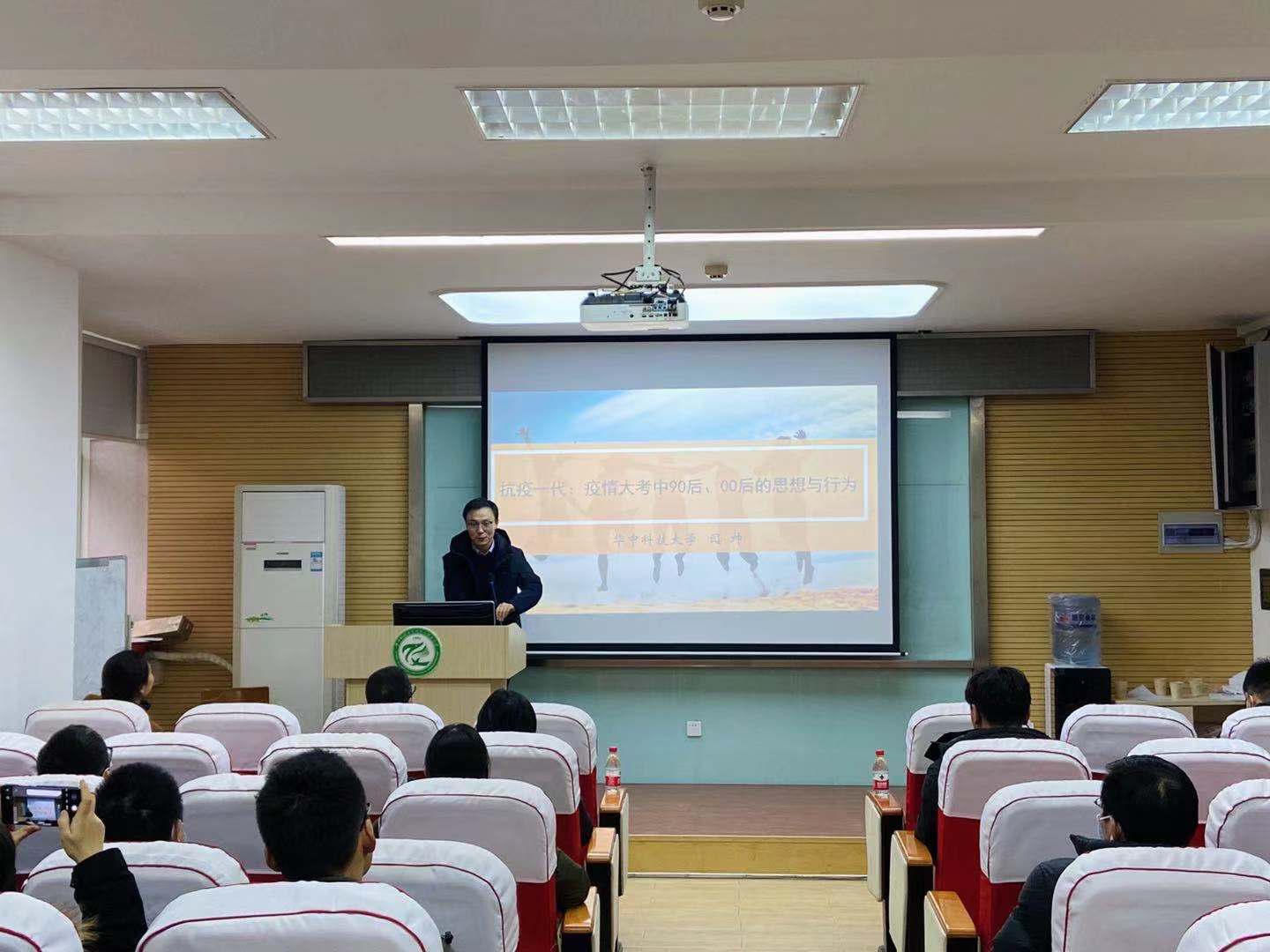 讲座伊始,闫帅老师从习近平总书记在抗击新冠肺炎疫情表彰大会上对青年的高度赞许引入,以独特而深刻的视角、风趣幽默的语言分享了在疫情后“关于疫情大考中湖北90后、00后青年群体思想行为”的调研成果。