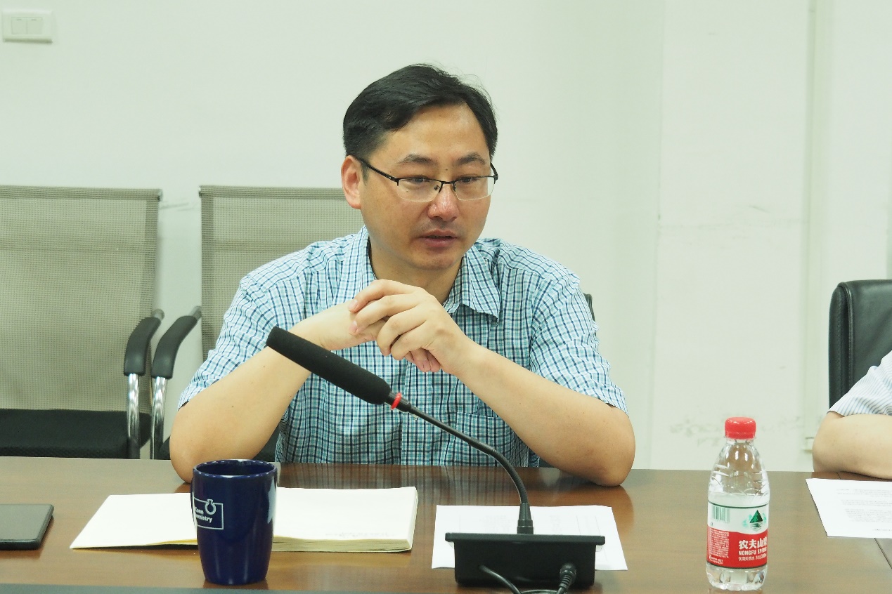 化学与化工学院院长朱锦涛简要介绍了学院情况。朱院长指出,在学校的大力支持下,学院近年来在制度建设、人才引进、教学成果、人才培养、学科建设等方面都取得了可喜的进展,但仍存在着学科发展不平衡、师资力量不均衡、高端人才偏少、国家级奖项缺乏等不足,希望陈校长能对学院当前的问题和困难给予帮助,多多指导。