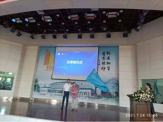 我院应用化学系系主任廖永贵教授从武汉大学化学学院副院长周金平教授手中接过赛区旗