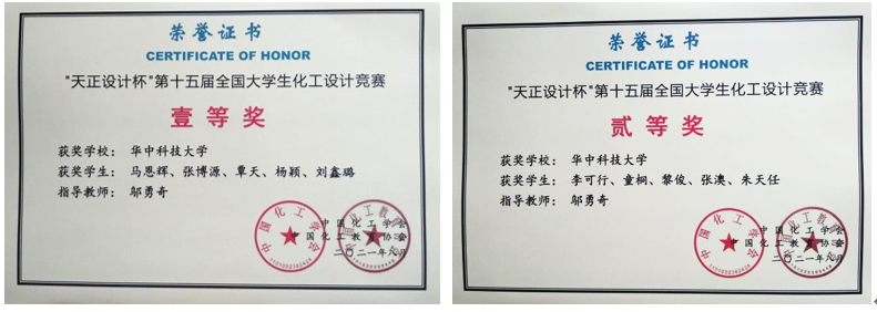 (通讯员:李亨)8月16至22日,第十五届全国大学生化工设计竞赛全国总决赛在线上举行。经过激烈角逐,我院邬勇奇老师指导的参赛团队斩获多项荣誉。其中,马恩辉,张博源,覃天,杨颖,刘鑫璐同学荣获全国一等奖和华中赛区特等奖;李可行,童桐,黎俊,张澳,朱天任同学荣获全国二等奖。除此之外,由邬勇奇老师指导的谢佳妤、王卓器、王梓杰、桂双艳同学在第四届全国互联网+化学反应工程课模设计大赛中荣获全国二等奖,另一支队伍荣获全国三等奖。而在7月举行的中南地区高校化工实验竞赛中,由王华军、白荣献、熊辉三位老师指导的桂双艳、周哲远和曾鸿林同学荣获赛区二等奖。