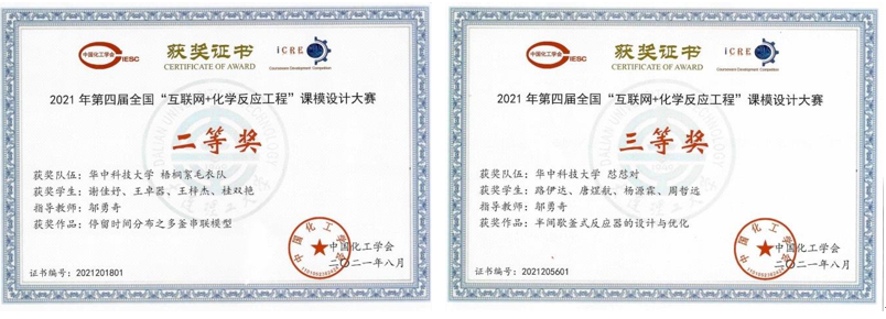 “全国互联网+化学反应工程课模设计大赛”是由教育部化工教指委发起,由中国化工学会主办的全国高校竞赛,旨在提高本科核心课程教学质量,激发大学生学习积极性和主动性,并为我国化学反应工程教学数字化资源库的建设提供素材。第四届大赛于今年五月正式启动,吸引了包括清华大学、华中科技大学、天津大学、四川大学、中南大学、大连理工大学、北京理工大学等众多“985” “211”“双一流”高校在内的80多所高校、约350支队伍及1500人参赛。我校获奖的级别和数量再次居湖北省各参赛高校之首。同时邬勇奇老师荣获全国竞赛组委会颁发的“优秀指导教师奖”(全国仅9位指导教师获此荣誉)。