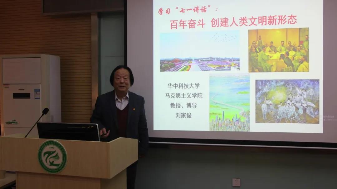 10月28日下午两点十分,华中科技大学马克思主义学院刘家俊教授应邀为我院师生宣讲“七一”重要讲话精神。