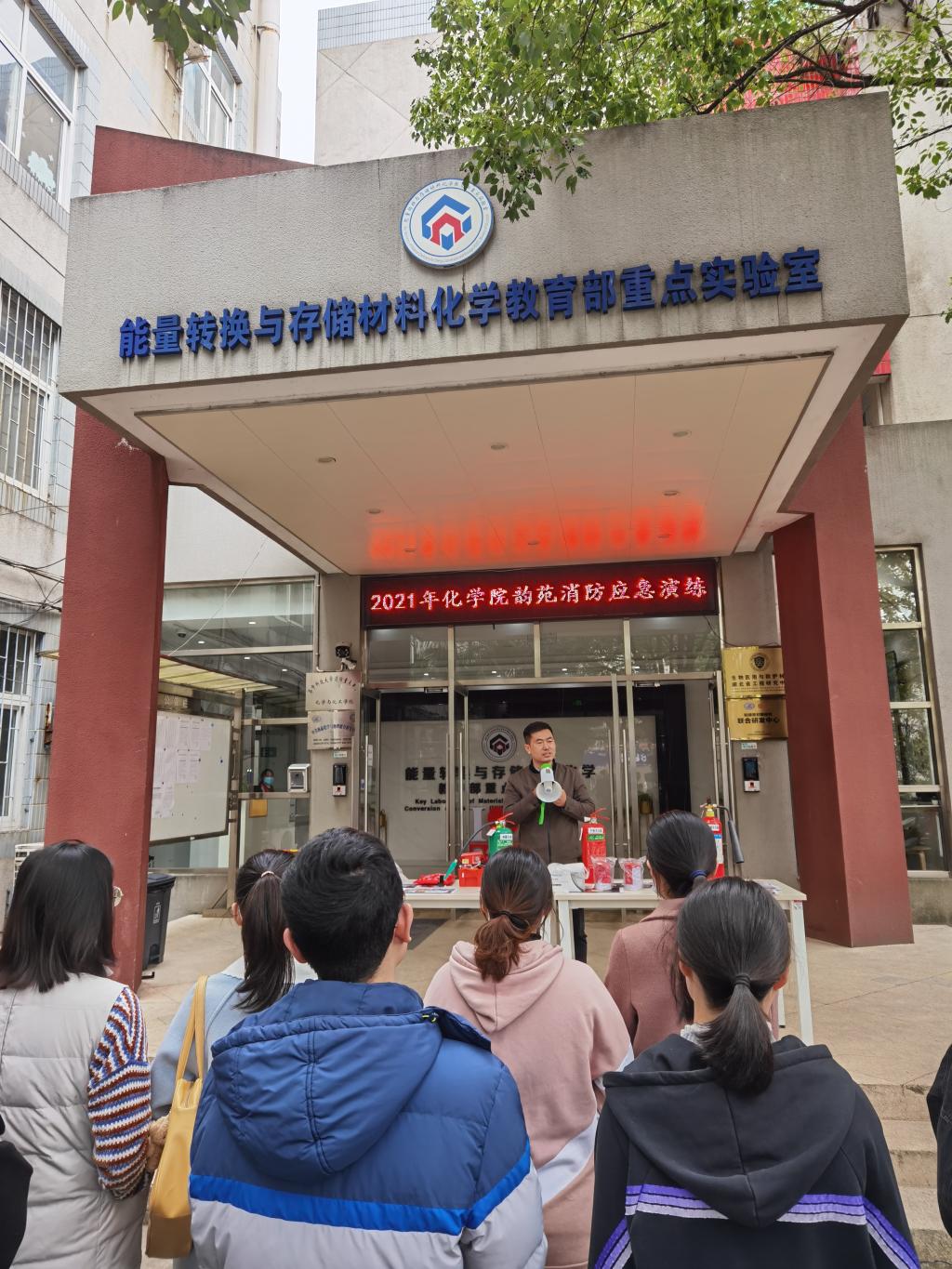 下午3:10随着消防警报的响起,消防广播的疏散播报,消防疏散演练正式拉开了序幕。韵苑28栋全体300余名师生在疏散组的引导下快速、有序的,从实验楼区域疏散到安全空地上集中进行消防灭火演练。首先舒老师向全体师生演示了灭火器的规范使用方法和注意事项。在保卫处人员的组织协调下,学院师生先后进行了灭火演练操作,掌握了如何应对初期火灾扑救如何正确组织人员疏散逃生的技能。