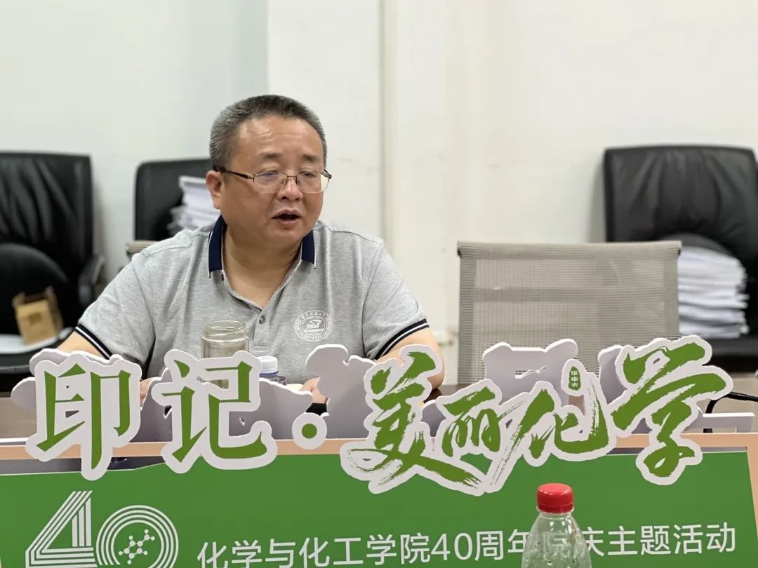 学院党委书记江洪洋致辞。江书记回顾了学院四十年来的艰辛发展历程,勉励同学们接好历史的接力棒,立大志、担大任、成大器,牢记化学人的使命担当,踔厉奋发,笃行不怠,在更加广阔的天地中有所作为。