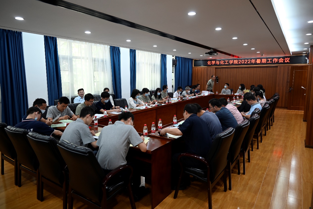 江洪洋书记向全院教职工传达2022年学校暑期工作会议精神。江书记从形势与政策、挑战与机遇、思考与对策三个方面对学校暑期工作会议内容进行了传达。江书记在会议中表示:“我们国家正在经历百年未有之大变局,学院要牢牢把握国家发展历史方位,把握未来发展主动权,加强基础学科拔尖学生培养,扬优势,强弱项,补短板,推动化学学科高质量发展,为建设新时代卓越华中大、一流化学学科,做出新的更大的贡献。”