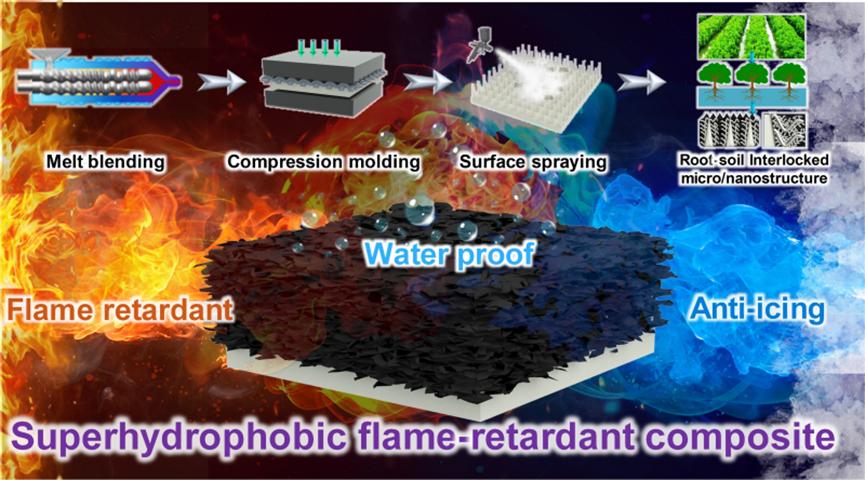 1月31日,记者从华中科技大学(以下简称“华科大”)获悉,该校化学与化工学院瞿金平院士团队、吴婷老师一项关于《受防护林启发具有根-土互锁微纳结构的超疏水阻燃复合材料》的最新研究成果日前在《先进功能材料》杂志在线发表。该研究在仿生超疏水阻燃复合材料领域取得重要进展。