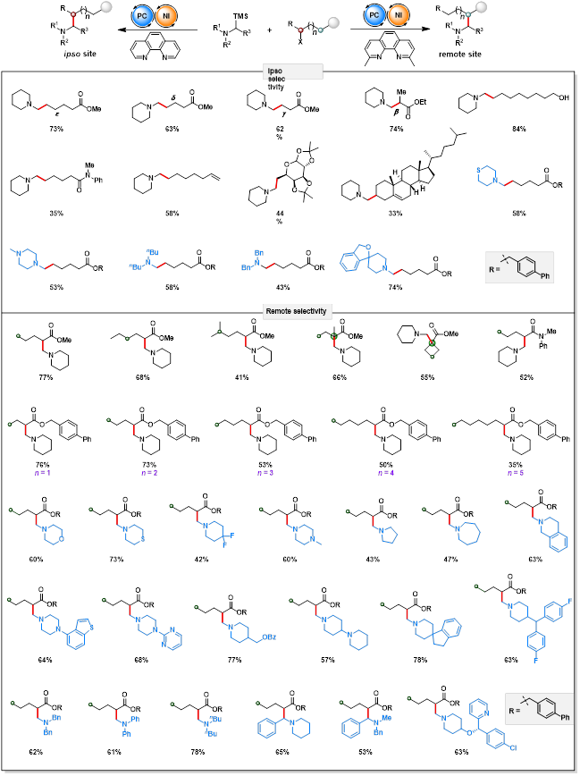 图一. /可见光协同催化未活化烷基卤代物的区域发散性氨烷基化