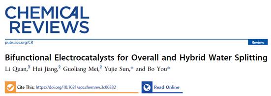3月22日,华中科技大学游波教授团队及合作者在国际顶尖化学期刊《化学评论》(Chemical Reviews)(影响因子62.1)发表了题为“Bifunctional Electrocatalysts for Overall and Hybrid Water Splitting”的综述文章。文章系统介绍了:水分解半反应以及复合水分解的基础理论、电化学重构及相关的物理化学表征、催化剂双功能性的形成机理以及阳极替代反应耦合的复合电解类型。同时也指出系统集成策略在解决该领域挑战性问题中的重要性。
