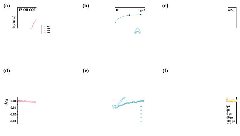 2a-cCOFs的变温荧光光谱和相应的拟合曲线,以及其瞬态吸收光谱(d-f)。