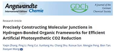 近日,我院谭必恩教授和王笑颜副研究员的最新研究成果“Precisely Constructing Molecular Junctions in Hydrogen-Bonded Organic Frameworks for Efficient Artificial Photosynthetic CO2 Reduction”在国际顶级期刊《德国应用化学》(Angewandte Chemie International Edition)杂志刊发。