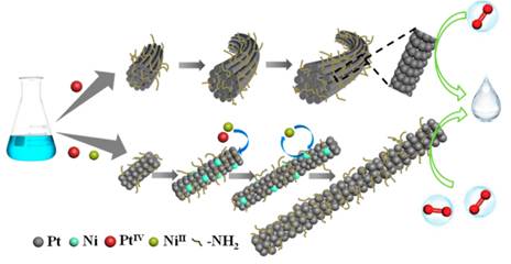 图2. Pt3Ni双金属合金纳米线的形成机理示意图