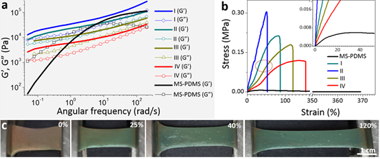 2. 光子晶体弹性体的力学性能以及应力响应变色能力。